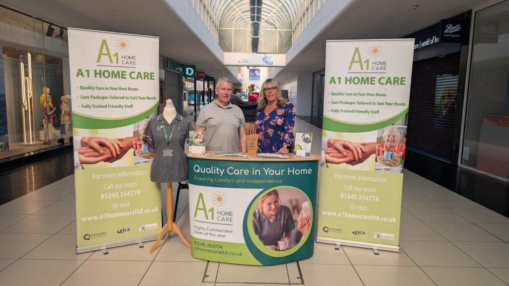 A1 Home Care showcased their services to the public on Saturday 21st June in the High Chelmer Shopping Centre Chelmsford, it was a great day with lots of members of the public chatting to our staff about loved one’s care needs , Nicky, Charlotte and Veronica were there manning the counter offering guidance and answering questions advising people.